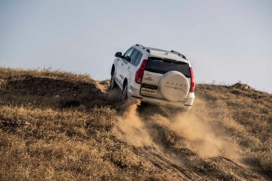 哈弗H9和途达都采用前双叉臂后多连杆整体桥式的悬架形式,一般来说对于非承载车身的硬派越野车,我们很难用“舒适”这两个字来形容它,不过哈弗H9和途达都做到了。两台车减震器的调校非常具有韧性,压缩阻尼和回弹阻尼的设定都相对柔软,这种调校对于跑铺装道路和搓板路这种颠簸较小的路面非常适用,可以很好的快速吸震及慢速释放,乘坐感受都非常舒适。遇到大冲击的时候,往往悬架行程的多少才是最重要的,但不要忘了它们都是素车,你不能要求它们和赛车一样什么路况都如履平地,就算遇到大颠簸悬架打底的情况,坐在车内也不会感觉太突兀,给人感觉车是一直悬浮着的,再配合舒服的座椅,真正传到你身上的震动已所剩无几。