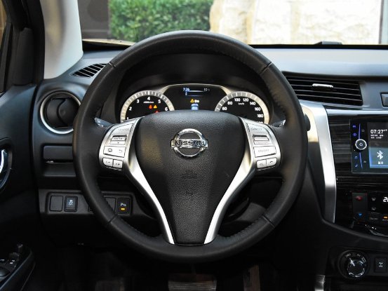 途达的内饰透着一股粗狂、野性,中控台上面全是硬的,对一款二十多万的车来说表现的不算好。三幅式真皮多功能方向盘,握感单薄了点,好在表面包裹的真皮触感比较细腻。仪表采用双圆表+中间液晶屏的组合,屏幕功能多样,可以显示行车电脑、四驱系统、胎压等信息,实用性不错。中控屏幕运行比较流畅,没有明显的卡顿,触摸屏也比较灵敏,总而言之,用着不费劲。