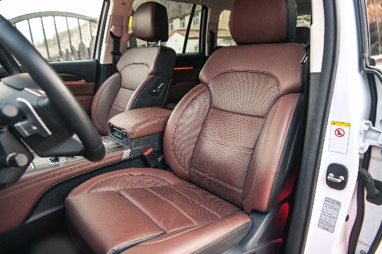 内饰方面,哈弗H9宽大的座椅、方向盘及中央扶手,很好地诠释了“铁汉柔情”这四个字,仔细端倪你会发现哈弗H9的内饰还是透露着细致和豪华,整个中控台布局看起来非常规整,豪华感来自于大量软皮革材料和中控台的木纹装饰板,能用手触及到的地方都被软皮革质覆盖,细节之处处理的非常得当。