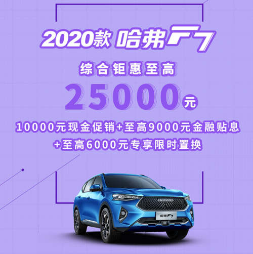 此外,现在下单订购2020款哈弗F7可享受至高25000元综合钜惠,近期有购车打算的小伙伴抓紧时间上车哦。