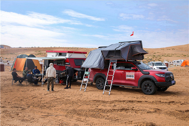 10月2日,和众多车友共同来一场沙漠快闪,让《歌唱祖国》的声音响遍全场,为祖国送上我们独特的生日祝福;热爱美食和烹饪的朋友,就来荒野美食体验区,感受旅装炮“把家带在路上”的野奢露营生活方式,并在美食达人的指导下亲手制作,享受美好“食”光;晚上的沙漠音乐会自然不容错过,与摇滚乐队、神秘明星激情嗨唱,一起燃炸苍茫大漠!
