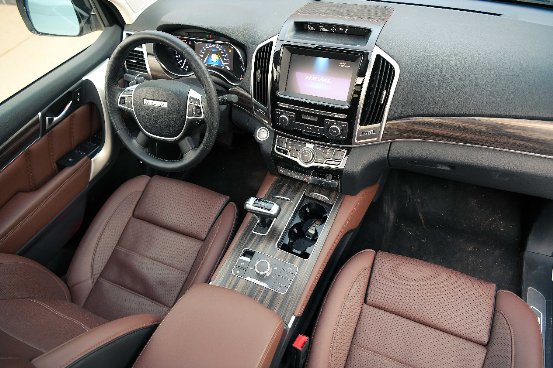 内饰方面,哈弗H9宽大的座椅、方向盘及中央扶手,很好地诠释了“铁汉柔情”这四个字,仔细端倪你会发现哈弗H9的内饰还是透露着细致和豪华,整个中控台布局看起来非常规整,豪华感来自于大量软皮革材料和中控台的木纹装饰板,能用手触及到的地方都被软皮革质覆盖,细节之处处理的非常得当。