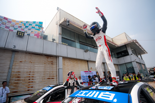 随后赛事竞争激烈,赛会总共3次出动安全车。曹宏炜在被对手挤上草地,他只能返回维修区让技师清理前进气隔栅再返回赛道展开追击。最终,崔岳带着2.101秒的优势率先迎接了挥舞的方格旗,以Pole-to-Win的姿态夺得了自己为东风悦达起亚车队拿下的首座冠军奖杯。范特拿的赛车经历碰撞后,无法施展全力最终稳定以季军名次完赛。东风悦达起亚车队再度锁定厂商杯冠军,实现东风悦达起亚在2018-2019赛季广东肇庆站厂商杯四连冠!