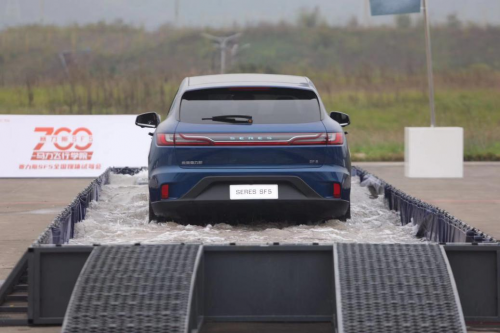 坑洼涉水路段将综合考验电池防水性能和底盘通过性,让你深刻体验赛力斯SF5湾鳄般的潜水实力,其电池防护标准达到了IP67级,其筑造了电池模组外壳、电池包结构、车身边梁结构三重“防护墙”,即便在1米深水下浸泡30分钟也没问题;而181mm的满载离地间隙,更将助你从容涉水。